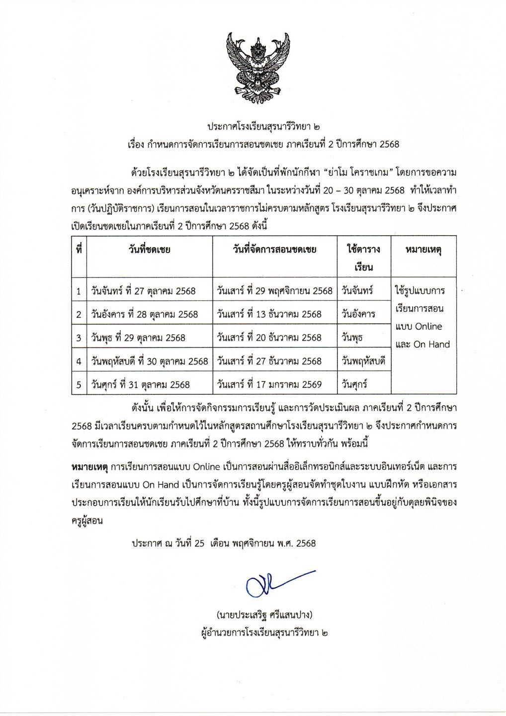 กำหนดการการจัดการเรียนการสอนชดเชย