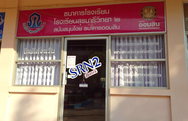 โรงเรียนสุรนารีวิทยา 2 ร่วมกับ ธนาคารออมสิน ได้จัดตั้งธนาคารโรงเรียนขึ้น บริเวณชั้น 1 อาคาร 2 เพื่อให้บริการ รับฝาก ถอนเงิน สำหรับนักเรียนและบุคลากร อันเป็นการฝึกนิสัยการเก็บออม ให้กับนักเรียน ดังคำกลอนของท่านสุนทรภู่ กวีเอกของไทยที่กล่าวไว้ว่า