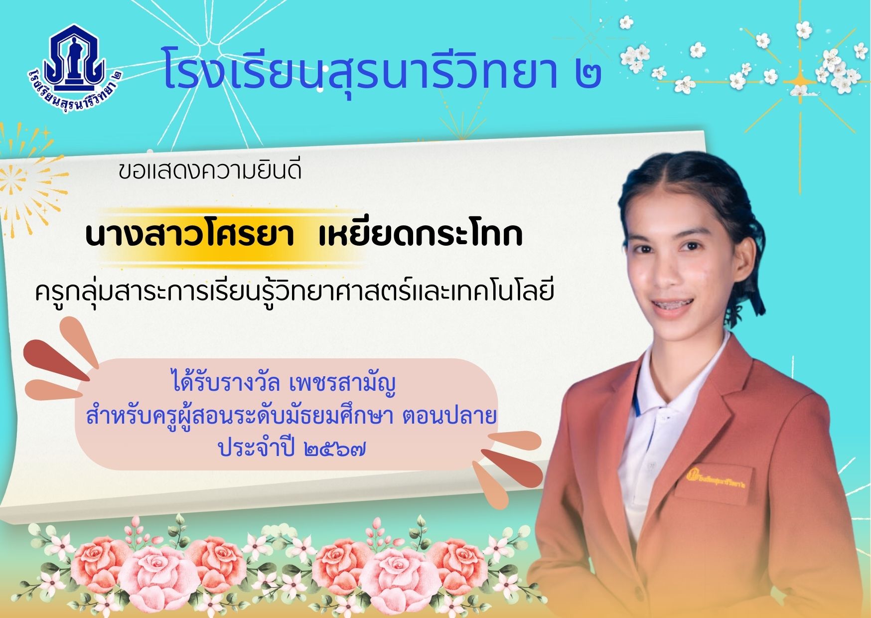 ขอแสดงความยินดี คุณครูได้รับรางวัล เพชรสามัญ ตอนปลาย